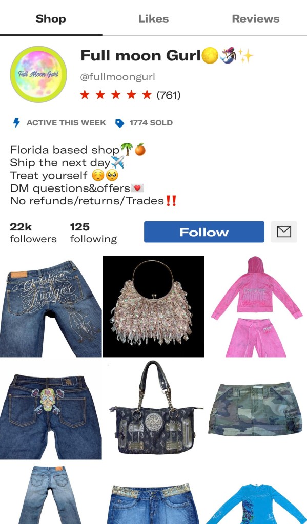If you want to relive your Y2K days, this is the Depop store for you. Unlike a lot of other vendors, there is a lot of clothes that is still for sale– reasonably priced as well!